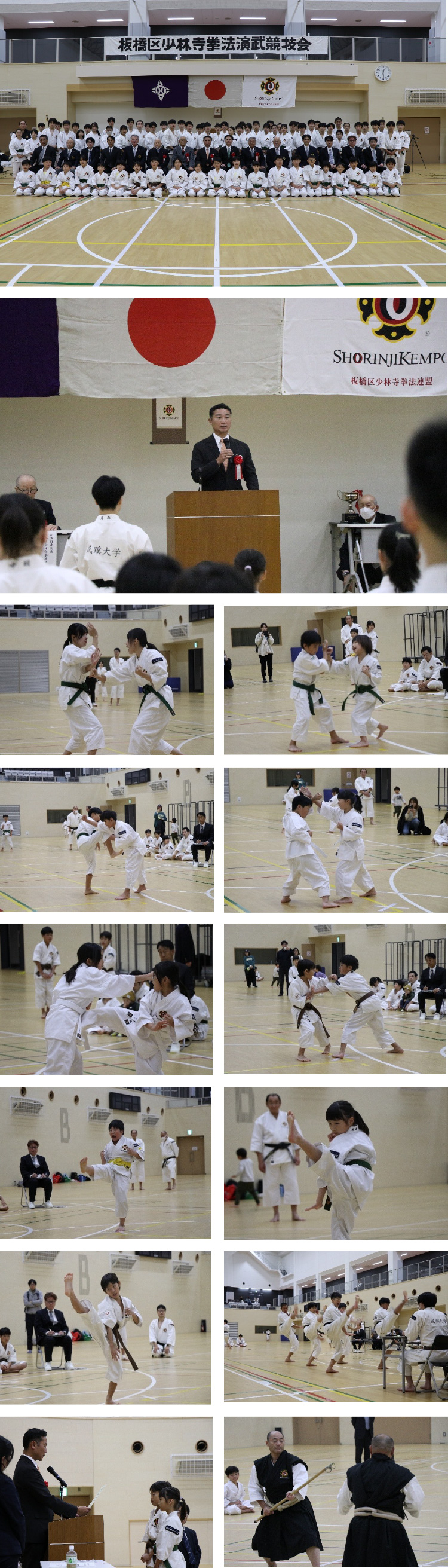 | 小学生単独演武の部 | 第1位 板橋小豆沢 下山佳太 第2位 板橋小豆沢 油井椋太 第3位 板橋小豆沢 山下航平 第4位 板橋小豆沢 油井彩那 第5位 板橋加賀 奥田悠里 第6位 板橋小豆沢 寧 詣程 |